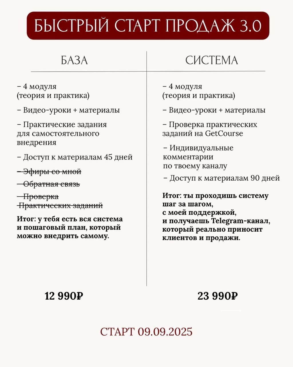 📌 После интенсива: – У тебя чёткое позиционирование и главный продукт. – Канал упакован так, что люди хотят подписаться. – Есть система контента, который ведёт к продажам. – Есть план продвижения без рекламы и с учётом нового закон.
